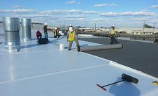 • Укладка новой гидроизоляции методом расплавления ПВХ мембранного материала Logicroof V-RP 1,5 мм